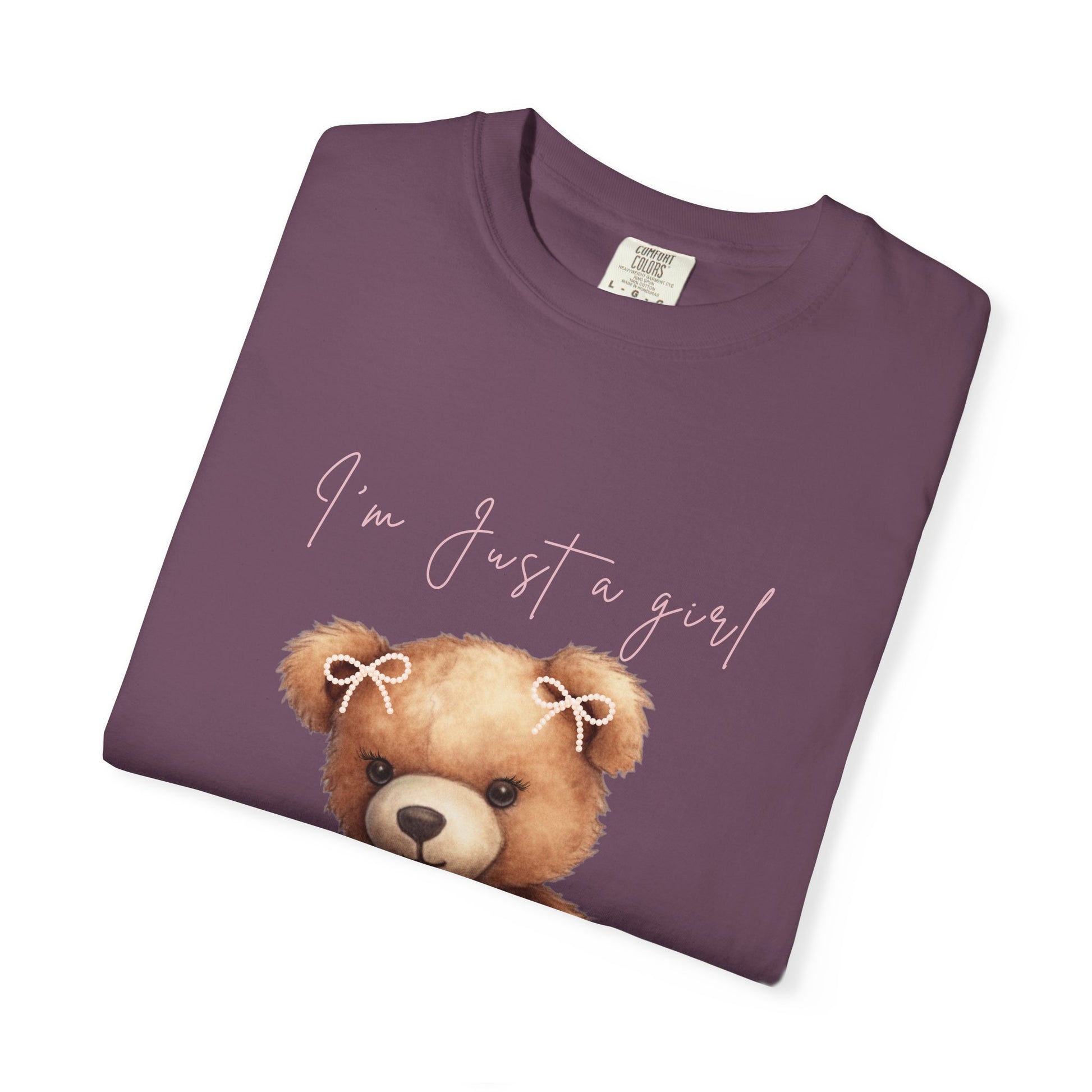 Introducing a cozy, unisex garment-dyed T-shirt perfect for casual wear or special occasions. This soft tee provides a relaxed fit that ensures all-day comfort, making it ideal for lounging at home or heading out with friends. The adorable teddy bear design brings a touch of nostalgia and warmth, making it a great gift for loved ones or a delightful addition to your own collection. Suitable for gifting during holidays such as birthdays, Valentine’s Day, or even just to brighten someone’s day, this T-shirt is a charming way to express love and affection. With multiple colors available, you can easily style it to match any outfit.